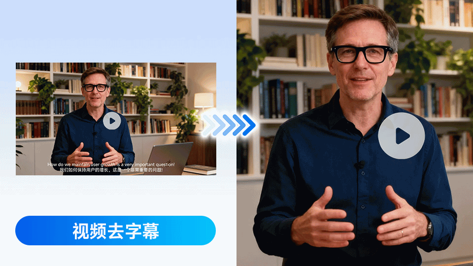 分派AI视频去字幕功能,通过AI识别精准清除字幕区域(logo、字幕等),自适应修复背景画面,支持多种视频格式,高效无痕,5倍速极速处理。免费在线体验!